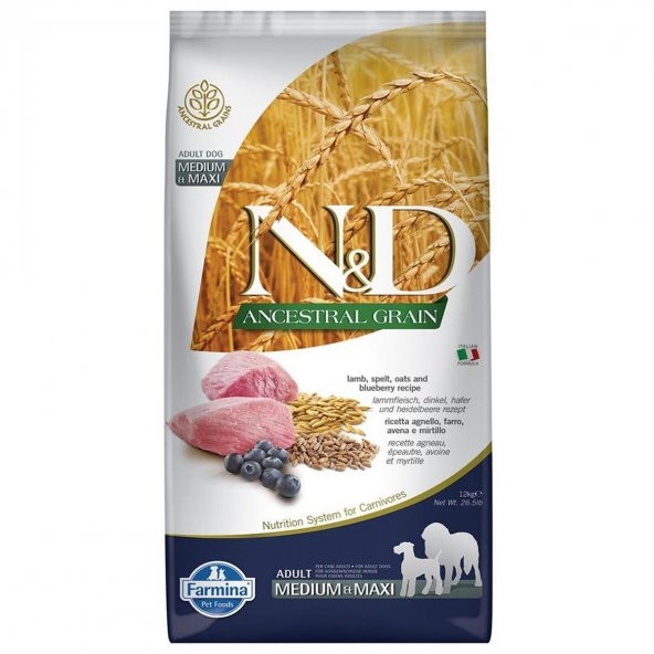- خانه - غذای سگ - ان اند دی - غذای سگ زغال اخته دانه ای ND دانه کم دانه 12 کیلوگرمی متوسط ماکسی-گوشت گوشت بره بزرگ