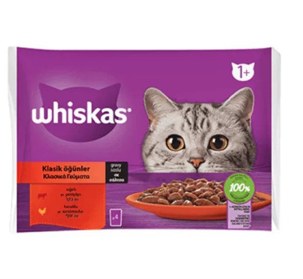 کیسه ویسکاس گربه بزرگسال کنسرو گوشت گاو و مرغ در سس 85 گرم (4 عدد)